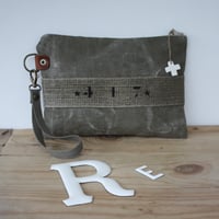 Grande pochette plate réalisée à la main dans une toile militaire kaki bien patinée.